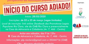 Comunicado : Adiamento do inicio do 4° Curso das Promotoras Legais Populares de Rio Claro