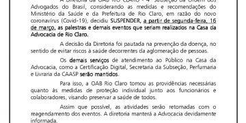 17/04/202012270OAB DE RIO CLARO REIVINDICA AO GOVERNO MUNICIPAL A PRORROGAÇÃO DO ISSQN Visando minimizar o impacto da paralisação das atividades ... -