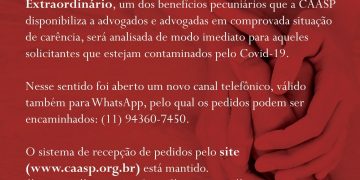 03/04/202018490AUXÍLIO EXTRAORDINÁRIO E O CORONAVÍRUS A Diretoria da Caixa de Assistência dos Advogados de São Paulo está na luta contra ... -